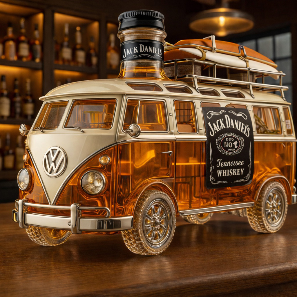 Whether displayed proudly or poured during a memorable evening with friends, this bottle embodies the spirit of freedom, adventure, and classic design. 🥃🚐