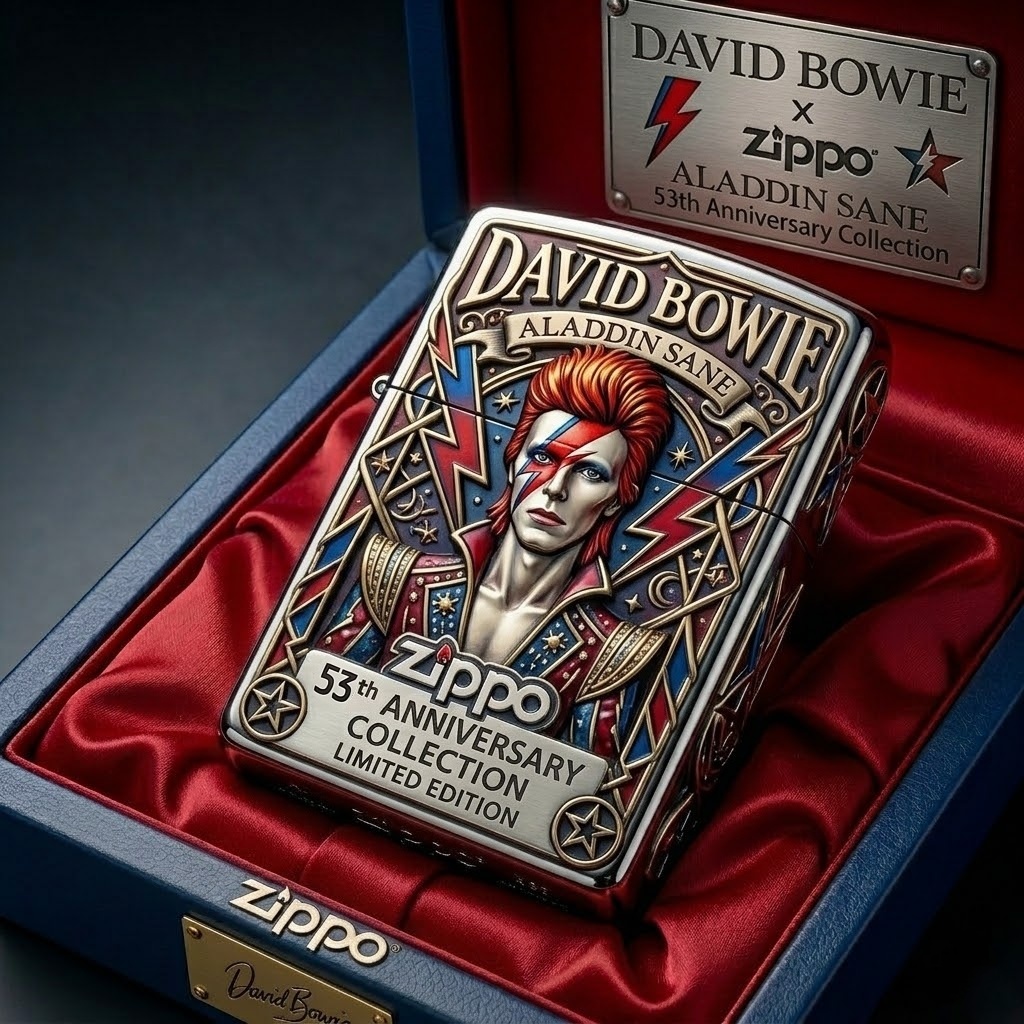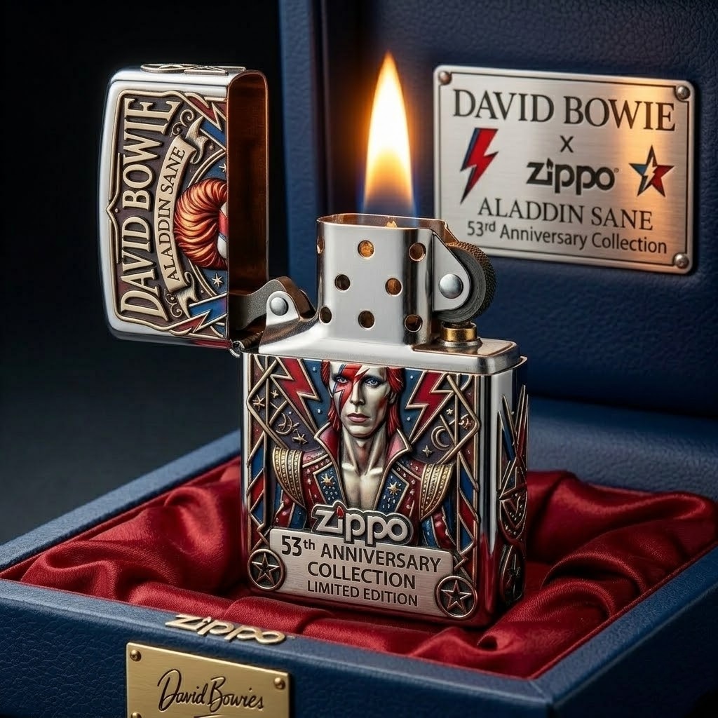 The Ultimate Tribute for Serious Collectors: Presented in a premium red satin-lined display box with a matching metallic plaque. It’s an extraordinary gift for Bowie enthusiasts and a centerpiece for any high-end lighter collection.